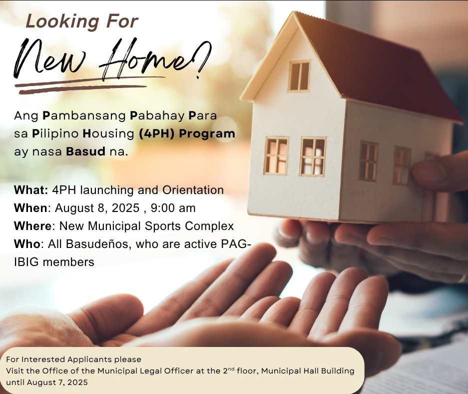 Opisyal nang ilulunsad ng Pamahalaang Bayan ng Basud ang 𝐏𝐚𝐦𝐛𝐚𝐧𝐬𝐚𝐧𝐠 𝐏𝐚𝐛𝐚𝐡𝐚𝐲 𝐏𝐚𝐫𝐚 𝐬𝐚 𝐏𝐢𝐥𝐢𝐩𝐢𝐧𝐨 𝐇𝐨𝐮𝐬𝐢𝐧𝐠 (𝟒𝐏𝐇) 𝐏𝐫𝐨𝐠𝐫𝐚𝐦 — isang komprehensibong...